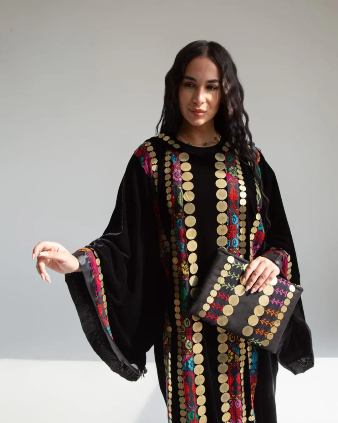 تألقي بإطلالة شرقية أنيقة مع هذا القفطان الأسود الفاخر، المصمم بتطريز تراثي مزين بقطع معدنية لامعة تضفي لمسة من الفخامة والجاذبية. تصميمه العصري يجمع بين الأناقة والراحة، مما يجعله خيارًا مثاليًا للسهرات والمناسبات الخاصة.Step into elegance with this luxurious black kaftan, featuring a stunning traditional design adorned with shimmering metallic accents. A perfect blend of sophistication and comfort, making it an ideal choice for evening events and special occasions.